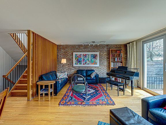 Beautiful modernist "D" townhouse with 4 bedrooms, 2 offices, and 3 baths on the south side of 56th street near Harper. Either or both offices could be used instead as bedrooms. Extensive renovation took place in 2009, including a new kitchen with stainless appliances, 3 baths fully redone, copper plumbing, all new Andersen windows, new tear off roof, and finishing of the lower level to add family room, guest room, laundry and storage room. The most notable differences with other "D" townhouses are a full bath on the first floor which is accessible from the hall, a reconfigured primary bath enlarged to accommodate a dual sink vanity, soaking tub and separate shower with glass door, and an entry/coat closet next to the kitchen. Recent updates in 2021-22 include new glass patio door, new furnace and AC, tuckpointing in back and in front. Lovely southern exposure and private back yard with paved patio and garden beds. Parking space on the private drive adjacent to the yard. The location is extremely convenient to shopping in Hyde Park, the University of Chicago, both Lab school campuses, the lake and transportation to downtown. Owner is a licensed realtor in IL. Please schedule your showings starting May 6.