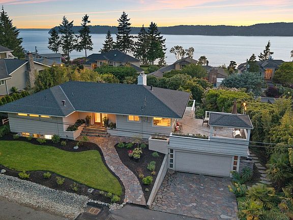 Stunning Mid-Century Modern View Home in Prime Mukilteo Location blending timeless architecture w/modern updates, framed by expansive Puget Sound views thru floor-to-ceiling windows, open-concept design, w/updated kitchen & primary suite w/spa-inspired bath. The walk-out lower level is perfect for guests or multi-generational living. Built for everyday comfort & unforgettable entertaining, the outdoor spaces include a covered BBQ area, cozy gas fire pit & waterfall feature. Hosting or unwinding, this backyard retreat is a rare find. Located in a peaceful, sought-after neighborhood near the Mukilteo waterfront. This is Pacific Northwest living at its finest-style, comfort & seamless indoor-outdoor living in one extraordinary home.
