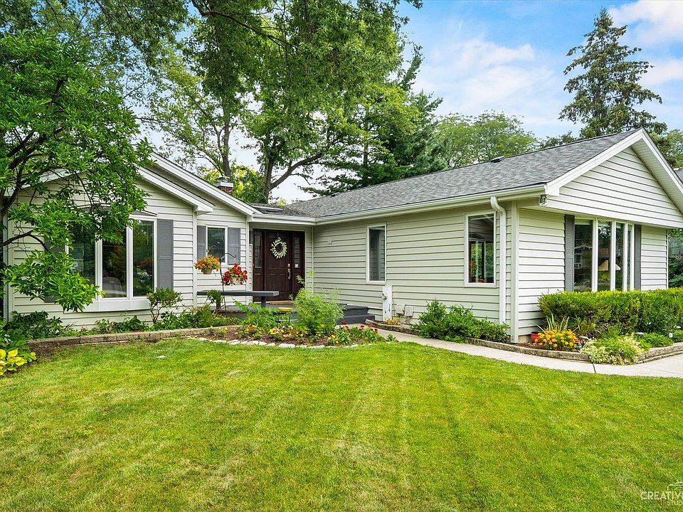 Meticulously maintained charming, expanded ranch on a sweeping 1/2-acre park-like lot in Glen Ellyn Schools. Welcoming porch leads to a sun-drenched foyer with handsome exterior door with sidelights, hardwood floors, skylight, and double front hall closet. Cheerful 9 window Living room with custom up down blinds, hardwood floors, woodburning fireplace with a gas starter. Family size Dining room with hardwood floors and picture window with up down blinds. Gorgeous gourmet Kitchen with custom cabinets, pullouts and pantries, wonderful Viking gas cooktop, high end appliances, built-in oven and microwave, granite countertops, reverse osmosis drinking faucet, solar and recessed lighting. Functional Bar area with custom cabinetry. Laundry room with newer full view door to deck, granite counter tops and walk-in closet. The cozy Family room has a wood burning stove and sliding glass doors to the patio with great views of the yard. The Master suite has an awesome gas log fireplace, two double closets, a huge Bathroom with a large soaking tub and a separate shower and toilet room. The other Bedrooms are updated, and both have double closets. Both the Full and 1/2 Hall Bathrooms are updated. The Basement has one large, finished recreation room, a work area, a cedar closet, and a utility closet. The 1/2-acre Yard is a wow. It features: The deck is a newer dark Brazilian hardwood that boasts a 30-40-year life '17; A private tucked away patio; A shed and a wonderful treehouse and a play area with a climbing wall, slide, and swing; multiple lighting features; and a perennial garden that flow throughout and the yard. So many new or newer exterior updates including extra wide driveway with extended parking for your boat or motor home next to garage '18. Siding '16. Roof and skylights '19. Cedar fence '13. Interior features include whole house professionally insulated '16. 220-amp service so you can choose gas or electric dryer. Furnace and AC '19. Bosch Dishwasher '19. Everything has been updated. Lake Michigan water and public sewer. Great location too: 2 blocks to Hadley Middle School and under a mile to Churchill Elementary School. 1.5 miles to Metra Station. Close to shopping, parks, restaurants, I355. Enjoy wonderful Glen Ellyn Park District with it's beautiful 18-hole Village Links golf center and restaurants. Perfect home for so many lifestyles. You will love living here.
