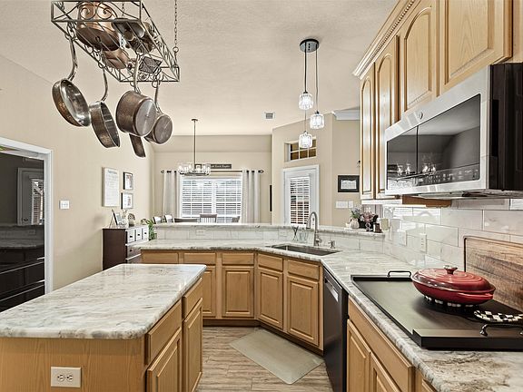 Cozy fireplacePlush carpetOutdoor tv spotLarge covered pergolaExceptional backyard oasisInviting firepitIsland with granite countertops