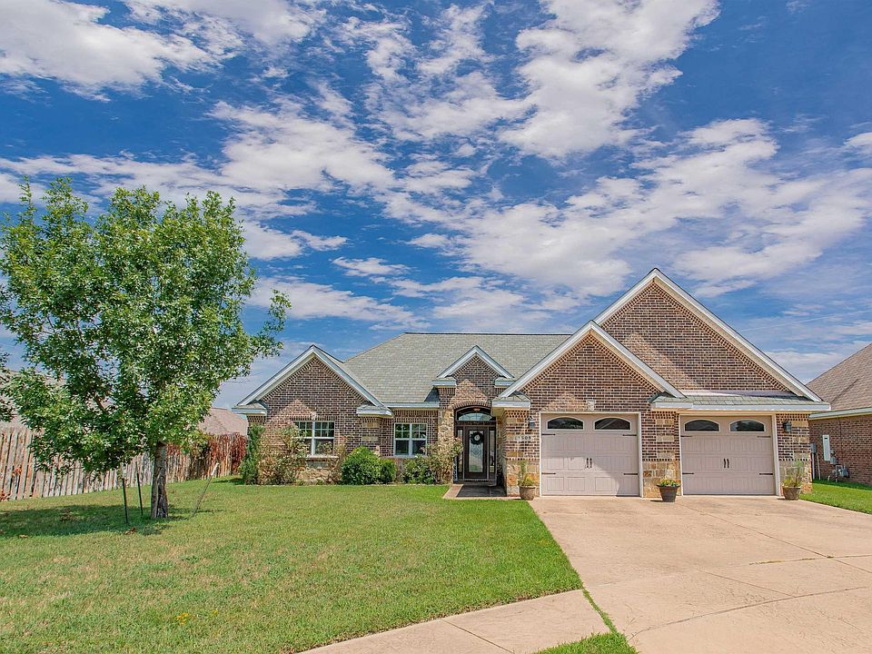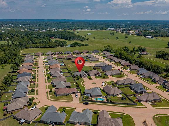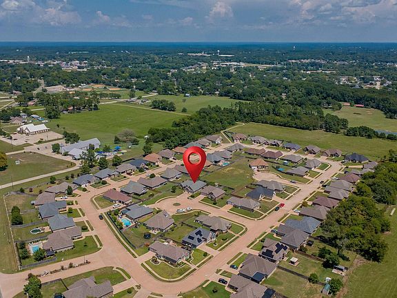 Beautifully maintained 3BR/2BA home located in a quiet cul-de-sac of the desirable Ruby Trails neighborhood. This open floor plan features stained concrete floors and countertops throughout, offering a modern, low-maintenance aesthetic. The kitchen comes fully equipped with a gas range, built-in microwave, and all appliances included . A dedicated office includes built-in desk and storage—perfect for remote work. Additional attributes of this home include a spacious primary suite featuring a walk-in closet with built-in vanity, a central vacuum system, gas fireplace in the living area, tankless water heater and spacious 2-car garage. Enjoy outdoor living with a covered back patio, fully fenced backyard, in-ground sprinkler system, natural gas connection for grill and private hot tub (included). Stamped concrete driveway and attractive landscaping add curb appeal. Quiet, sidewalk-lined neighborhood is centrally located with easy access to schools, groceries, downtown and I-20. Move-in ready and built for comfort and convenience. Schedule your showing today!