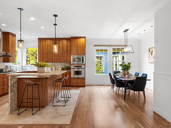 Fall in love with North End living in this beautifully remodeled 1900 Queen Anne home that perfectly blends historic character with modern comfort. Enjoy quiet mornings on the front porch and evenings gathered around the built-in gas fire pit under the arbor. Inside, an open floor plan welcomes you with warm natural light, a spacious kitchen with two dishwashers and pantry, and two inviting dining areas—one with a cozy built-in bench. The main-level office offers work-from-home convenience, while the large primary suite features two walk-in closets. Two bedrooms upstairs and two down (with large egress windows) provide flexible space for everyone. Step outside to a professionally designed yard by Franz Witte (2023) with covered brick patio that adds effortless outdoor living. Since 2022, the owners have made thoughtful updates inside and out. Exterior improvements include a french drainage system, new garage siding, and added gutters with covers. Interior upgrades feature a new heat pump compressor, updated basement flooring and windows, refinished hardwoods, and custom lighting throughout the main level. Just steps from Hyde Park, Camel’s Back Park, the Co-op, downtown Boise, and the foothills—with easy access to Bogus Basin. Two car garage + parking space.