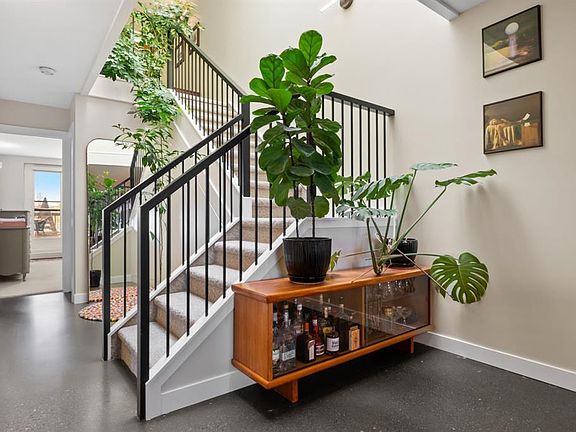 Welcome to Plaza 14 — an architecturally significant boutique residence with each unit accessed from a bright, promenade-style hallway that sets the tone for refined urban living. This well-managed complex is over 70% owner-occupied, offering a strong sense of community and pride of ownership throughout. This suite greets you with a spacious, skylit foyer that makes an immediate impression, offering exceptional storage and a seamless flow into the heart of the home. A striking staircase with beautiful custom storage design beneath leading to the main living area, creating a true sense of arrival. Flooded with natural light, the thoughtfully designed layout features generously sized rooms all on one level. The east end of the suite showcases a beautifully updated kitchen, living, and dining area — complete with a cozy wood-burning fireplace, a private balcony, and sweeping views of the city skyline. Centrally positioned between the east and west wings of the home, you’ll find the stylishly renovated main bathroom and laundry area, offering convenience and thoughtful separation between living and sleeping spaces. At the opposite end, two expansive bedrooms (both with new double pane windows) and a second modern ensuite bathroom. You’ll also find an impressive 600 sq. ft. west-facing private patio — the perfect retreat for relaxing or entertaining. Every detail has been carefully considered, with recent renovations including updated bathrooms, kitchen, laundry room, flooring and appliances. This one-of-a-kind residence combines architectural character with contemporary style in one of Calgary’s most desirable communities. Just steps from the vibrant shops, cafés, and amenities of Hillhurst and Kensington, you’ll experience the very best of urban living right at your doorstep.