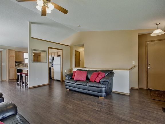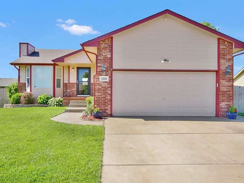 Immaculate completely updated 5 bedroom, 3 bath home in Goddard Springhill Addition. This stunning open floor plan home has bay windows in living room and dining room along with vaulted ceiling's. Updates include new exterior paint, brand-new Pergo outlast wood laminate flooring, Rinnai tankless water heater, manifold water system, water softener and Ecobee smart security system. In the garage you have pull down attic stairs and built-in shelving for storage. The details just keep coming with a view-out basement which has surround sound wiring in the a recreation or theater room adjacent to the wet bar. Owner can leave fish tank, bar refrigerator, outside playset, and sink in the garage. Measurements estimated in kitchen.