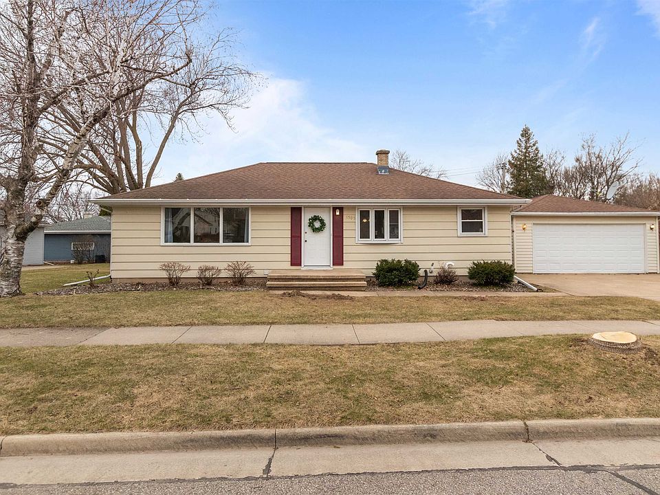 Step inside to find a spacious living area filled with natural light from large front-facing windows. The layout flows into an eat-in kitchen featuring warm wood cabinetry and plenty of counter space. Three comfortable bedrooms and a full bath complete the main level, along with the bonus of main-floor laundry. Downstairs, the finished LL offers a large rec room, a second full bathroom, and a classic bar area, perfect for entertaining, relaxing, or extra flex space. Outside, enjoy a 2-car detached garage, a manageable yard, and easy access to nearby amenities, parks, & highway access. Some of the finished LL finished space has exposed block walls. Showings begin 4/4. Offers due 5pm on 4/7 with presentation to seller on 4/8.
