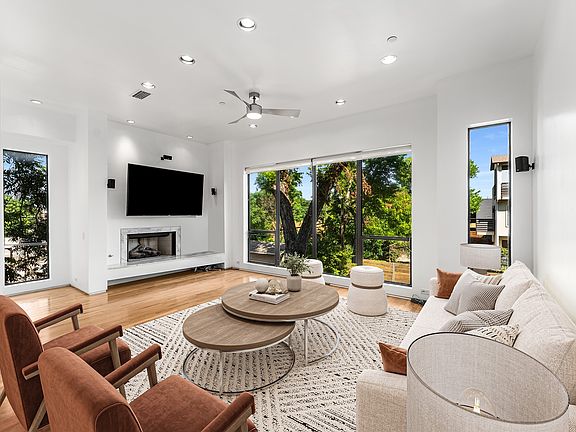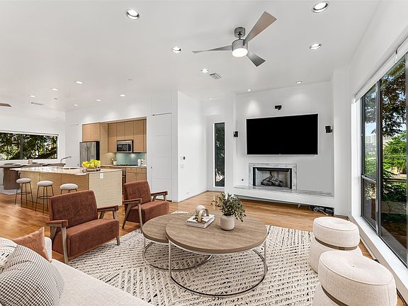 Experience refined modern living in this immaculate end unit, designed by acclaimed builder Alan Kagan. One of only five homes in a boutique development, this architecturally distinctive residence blends clean design, smart functionality, and high-end finishes across three well-planned levels. Natural light floods the space through expansive oversized windows, accentuating the high ceilings and open-concept layout that connects the kitchen, living, and dining areas. The chef’s kitchen is equipped with a large island, modern finishes, and a hidden 7-foot-deep pantry for exceptional storage. Additional features include a marble gas fireplace, museum-finish walls, and sleek wood floors. The first level offers a private guest suite and a turfed yard. On the second floor, the open living space flows onto a private balcony, ideal for relaxing or entertaining. The third level includes a flexible office space and a spacious primary suite with a floating double vanity, air jet tub, oversized walk-in shower, and a generous walk-in closet. A second private balcony leads to a rooftop deck with sweeping views of downtown Dallas. Located just minutes from Lower Greenville, Uptown, and Oak Lawn, this home delivers modern style and convenience in one of Dallas’s most dynamic neighborhoods.