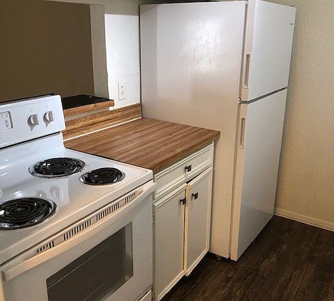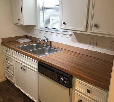 2 bedroom 1 bathroom downstairs apartment by TWU with off street parking and shared coin operated laundry room