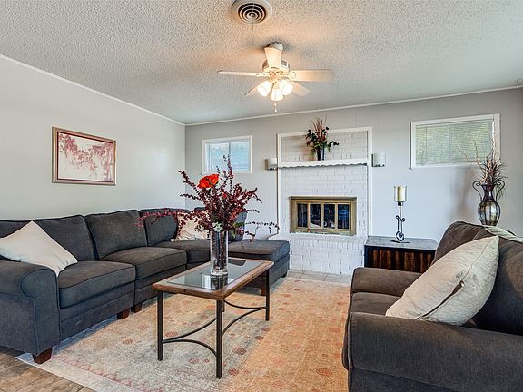 Charming 3-Bedroom Home in Peaceful Bowie, TX!  Nestled in the beautiful and quiet city of Bowie, this inviting 3-bedroom, 2-bath home is ready to welcome you! Enjoy small-town living just northwest of DFW, with easy access to restaurants, schools, and major highways — offering both tranquility and convenience.  Step inside to a warm and welcoming living room featuring a beautiful brick fireplace with a raised hearth, perfect for relaxing evenings or entertaining friends and family. The open layout flows effortlessly into the dining area and kitchen, creating a seamless space for gatherings. The kitchen stands out with its abundance of cabinetry and stunning custom hardwood countertops — a unique focal point that’s sure to spark conversation.  The spacious primary suite includes an ensuite bathroom for added comfort and privacy, while the additional full-sized bedrooms feature walk-in closets and plenty of room to make your own.  Step outside to your covered patio overlooking a huge backyard — the perfect setting for weekend barbecues, outdoor games, or simply unwinding under the Texas sky. A storage shed adds extra convenience for tools and lawn equipment.  This charming home offers the perfect blend of comfort, character, and location. Furniture is included! Don’t miss your chance — come see it for yourself before it’s gone!