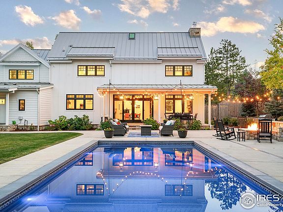 Tucked on over a half an acre in Boulder's prestigious Moores neighborhood, this masterfully designed estate built in 2018 offers the pinnacle of luxury living. At the heart of the residence is a designer kitchen showcasing top-tier finishes, expansive prep space, and seamless flow perfect for both intimate family living and large-scale entertaining. Seven spacious bedrooms featuring a sumptuous primary suite designed as a personal sanctuary with spa-like character. The home also offers two offices for remote work, a versatile flex room, and a lower level complete with a big-screen media room, sleek bar and wine cellar, and a dry heat sauna for elevated wellness. Step outside to your own private backyard oasis enclosed by 8-foot fencing and anchored by a swimming pool, hot tub, sport court, gas firepit, and built-in BBQ area. Additional amenities include a 4-car heated garage with an extra storage closet, a 10.5 kW solar array, in-floor heating, large garden shed, and a 4-stage whole-house water filtration system. This is a rare opportunity to own one of Boulder's most exceptional homes where performance, elegance, comfort, privacy and timeless design perfectly intertwine.