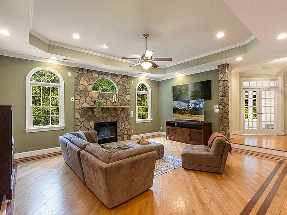 Gorgeous brick walk-out basement home on 1.69 very private wooded acres in highly sought-after River Oaks! The spacious side-entry garage and classic curb appeal are complemented by modern updates including a 2021 roof, 3 HVAC units (2024, 2022, 2011), and Ring security cameras. Inside, the home showcases hardwood floors throughout the main level, and electric remote-controlled EcoSmart window shades in the office, dining room, and primary bath. The gourmet kitchen features 2 ovens, new quartz counters, stainless appliances, a Solatube skylight, center island, veggie prep area, and walk-in pantry. Relax in the family room by the stone-surround fireplace. The main-level owner's suite offers a spa-like bath (remodeled 2022) featuring Hanex solid-surface shower and counters, a free-standing tub, walk-in shower, and private deck access. Additional features include a formal dining room, home office with built-in storage and bench, and two spacious bedrooms sharing a Jack-and-Jill bathroom. The beautifully finished, walk-out basement offers a wet bar with dishwasher, bonus room, a full bath, flex rooms, room suitable for wine storage, workshop with built-in benches and plenty of storage has endless possibilities for hobbies or maybe home business. Whether you're a nature lover, being in it or just enjoying the view, or a gardener enthusiast you will love the serene picturesque outdoor living which changes with the seasons. This home offers a screened porch with luxury vinyl floors, an expansive tiered deck, gas line for grill, spacious lower covered patio wired for hot tub, fenced yard, and irrigation system. Enjoy community amenities: pool, clubhouse, tennis, and pickleball, with easy access to area parks, Falls Lake, WakeMed North Hospital, shopping, US-1, and I-540! For those who love a quick stroll to restaurants, Brixx wood-fired pizza, Mamacita (Mexican cuisine), Bowlba Cafe, and River Pub are nearby.