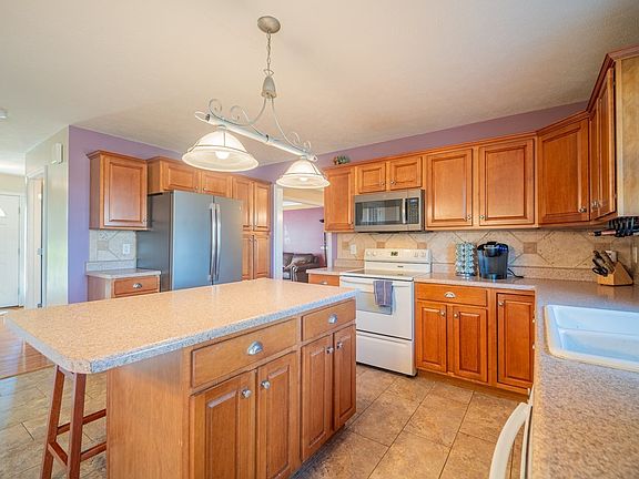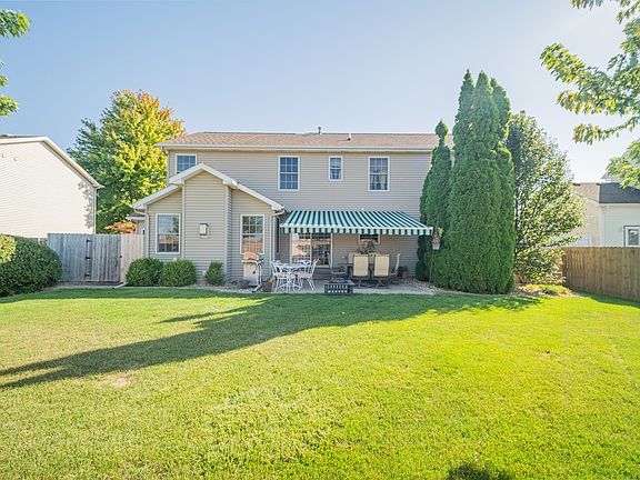 Not your average cookie-cutter home! Come see this meticulously cared for, one-owner home in Collie Ridge with no backyard neighbors! Built by Burmood Homes, this two-story 4 bedroom, 2.5 bath home is waiting for its new owner! The kitchen features beautiful upgraded maple cabinets, an island/breakfast bar, brushed steel fridge & microwave, backsplash & a nice open view to the main gathering room. Enjoy multiple living areas on the main level and an extra rec/living room in basement. Living & dining room have beautiful Brazilian cherry hardwood floors, dining has a cool tray ceiling. Main gathering room is large with a cozy gas fireplace. Main floor laundry right off of the heated 3 car garage. Upstairs you'll find a very spacious Primary suite with vaulted ceilings. Primary bath features a garden tub, separate shower, double sinks & a HUGE walk-in closet. All 4 bedrooms have walk-in closets. Second full bath features dual vanities and separate shower area. Outside you'll find a large patio, professional landscaping, wooden privacy fence, and an outdoor fenced in storage area. You can see beautiful sunsets from your back patio! Also a great place to see the fireworks from Fairview Park. What a great house for entertaining! Some bonus features include extra blown-in insulation in attic, battery backup sump, Sunsetter awning & all appliances stay. Recent updates include: BRAND NEW carpet Primary BR, upstairs hall & both staircases (Oct '24), garage opener (23), battery backup sump (22), and LOTS of fresh paint! Make this your new home today!