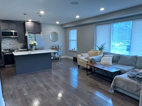 Fairly new apartment. All hard wood flooring. Quartz counter top. Sound system & video intercom. Has a back yard.