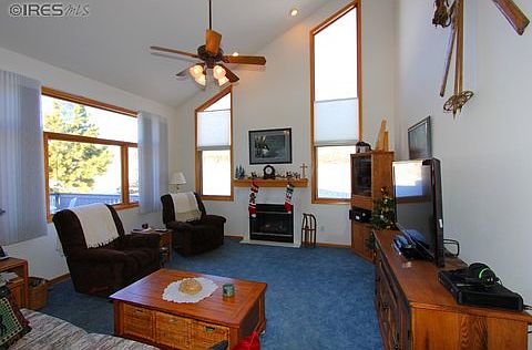 Big views into Rocky Mountain National Park, Main level living, open floor plan, vaulted ceilings, incredible views from all windows. Master suite with large closets and private bath. Spacious kitchen with island prep area/breakfast nook, opens with dining area and living room, walkout to patio for the views. Upper level with 2 bedrooms, more views and full bath. 2 car garage, tons of storage, freestanding condo has no connected walls with neighbor.