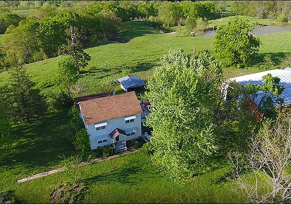 This is the farmhouse where I grew up. It was built the year I was born, 1949, by my grandmother’s brother. Our parents are gone now, and my sister and I would like to sell the house with approximately 32 acres of the original farm. This includes a 40 x 60 metal building, a 24 x 24 shop building, and other small out buildings. There’s a recent, 300+ foot deep modern rotary-drilled well, and a shallower cable drilled well inside the shop. About 5 acres of the property makes up a steep, forested hollow that leads down to where there’s about 70 feet of frontage on the South Prong of the Jacks Fork River. The rest of the 32 acres is in pasture, and there’s perimeter fencing of the whole acreage. There’s also a good-sized stock pond, stocked with fish. The house and outbuildings all need some attention, but this is an established home place and most everything we’re aware of works and doesn’t freeze up in winter. The rooms are not large, and you’ll probably want to remodel, or at least repaint. The house was built in a time of simple materials, from oak lumber obtained from a local sawmill, which is mostly a blessing. There are three bedrooms and a bath upstairs. Two of the bedrooms open to a sundeck. Downstairs are four more rooms and a smaller bath. Four years ago, we installed an air-source heat pump for heating and cooling. Our family always felt that this was a singularly attractive location, with views up and down the Jacks Fork Valley. It’s a quiet, peaceful spot only ten miles from town, the house being located a comfortable distance back from the highway. On bright summer days, there’s the view of the bluff above the river. On clear winter nights, you can hear the train running past Willow Springs. Edited to add 4/20/19: We had storm/wind damage to the roof a few weeks ago. A new roof for the house and shop is being installed by A+A Roofing of West Plains. Edit 5/21/19: Added three new photos showing the newly-installed $8000 roof on the house and shop building. The blue is the new color (for reference, the older photos have a brown roof). We added the roof, but have NOT RAISED THE PRICE.