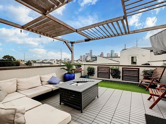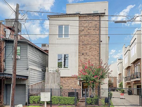 Chic, contemporary freestanding home located in the historic First Ward Art district. This 3 bedroom, 3.5 bathroom home sits on a corner lot of a friendly, gated community. The first floor has a guest suite that can also be used as a home office or gym. Spacious open concept living space on the second level with a huge quartz island kitchen, balcony and a guest powder room. Large windows throughout with custom fit, wooden designer blinds. The primary suite is located on the third floor including two walk in closets, dual vanities, garden tub and oversized shower. A second guest suite is also located on the third floor. The entire fourth floor is a private rooftop deck with gorgeous downtown views and plenty of space to entertain. This home is surrounded by a vibrant community of local business, breweries, and restaurants. Situated on the Heights Hike and Bike trail, you have immediate access to the Heights, downtown and EaDo as well as the POST Modern Mall and Eatery.