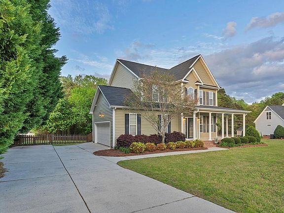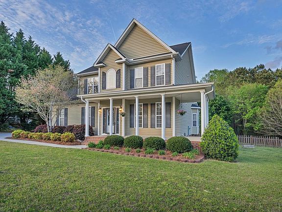 Welcome home to this BEAUTY in the desirable Bloomfield neighborhood! This well-maintained home w/ wrap-around front porch is very inviting! Inside, you are greeted w/ HW floors and a 2-story foyer allowing plenty of sunlight. Separate dining room w/ wainscoting and coffered ceilings- great for family gatherings. The kitchen offers white cabinets, plenty of counter space, a butler's pantry and a separate breakfast nook that opens to the spacious living room w/ gas log fireplace. Upstairs, the Primary suite w/ cathedral ceiling has a master bath w/ double vanity and newer, expansive shower w/ tile surround & 2 shower heads, water closet, shelving for linens, and 2 walk-in closets. The other bedrooms are spacious w/ ceiling fans. The Bonus Room or Office is bright and has access to walk-in storage space. Upstairs laundry room w/ washer + dryer is super convenient. Outside, the screened-in porch offers tranquil views of the wooded, fenced-in backyard w/ a deck and plenty of room for privacy. Updates~Freshly painted interior, Roof '17, Refrigerator & Stove '21, Primary Shower '20, HVAC Serviced Regularly. Community features pool, playground and ponds. Great location!!