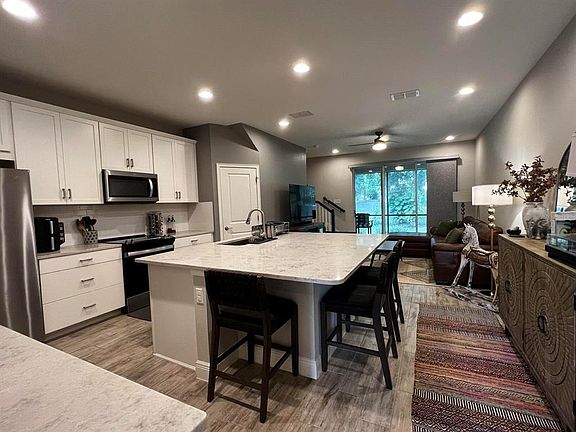 Beautiful Key West style, Waterfront Gated Community of BAYSIDE TERRACE has RESORT STYLE AMENITIES including a dock (kayak or canoe launch area) to catch those rays or enjoy the amazing Florida sunsets. Waterside Infinity Heated Saltwater Pool with covered Pavilion overlooking calm Water Views, Cabana, Two BBQ Grills, Gas Fire-Pit, Fitness Center, Clubhouse and more! Upon entering this ultra-modern 3 bedroom, 2 1/2 bath, you will feel at home. The kitchen is very spacious has extra-large island with built in Under-mount Sink, Quartz Countertops, brand new Stainless-Steel Appliances, and walk in pantry. Downstairs flooring tiled throughout. Outside screened in lanai boasts brick pavers. Upgraded Berber carpeting on the staircase with elegant rail leading to the carpeted loft and bedrooms. The master bedroom has ample room, walk in closet, his/hers closet and gorgeous en-suite bathroom with a second walk in closet! Bedrooms 2 and 3 has new carpeting and each has their own walk-in closet. Two owners...Unit has many upgrades throughout. Hurricane Shutters convey in the garage.