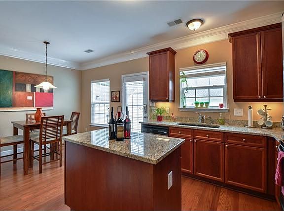 Lovely brick townhome in Lenox Village with two-car garage! Hardwoods on main level, granite/stainless kitchen, patio, and fenced yard. Charming covered front porch. Overlooks common greenspace. HURRY!