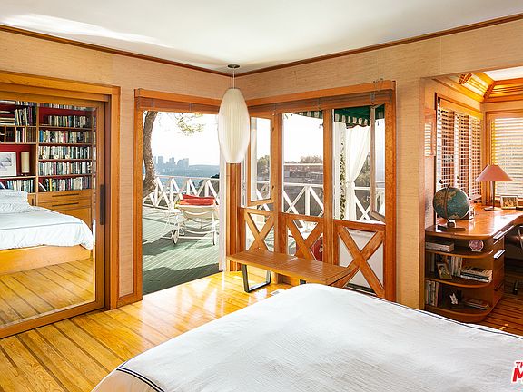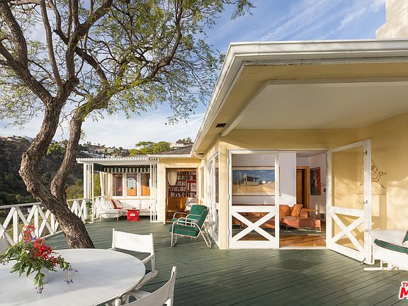 On a private cul-de-sac with views out to the Pacific, this light-filled structure was built in l940 by sculptress Ada May Sharpless with a double-height living room to serve as her home & studio. When film director Martin Davidson & his wife interior designer Sandy Davidson first laid eyes on it, "it was love at first sight." Honoring the original, beautifully-sited structure, the couple's attraction to the Streamline Moderne and Mid-Century Modern styles inspired the details of their remodel. The widely-published home offers hand-crafted wooden Moderne built-ins, a Palm Springs-inspired sandstone fireplace, inlaid hardwood floors and a carefully considered custom lighting design with both Japanese and Art Deco antecedents. Open plan design brings views inside and expansive decks invite outdoor living. Views, pool and yard (with separate street entrance) make for a rare trifecta of Hollywood Hills living above the Sunset Strip. 2-car garage with direct entry, and street parking.