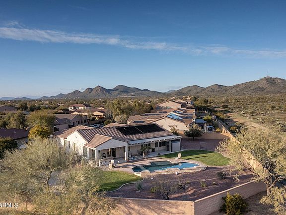 Located in the exclusive gated community of Desert Pass at Sonoran Foothills in North Phoenix. This must-see 4,457 square foot home with a basement features 5 bedrooms, 3.5 baths, a den, a double and a single car garage. From the 0.51-acre premium lot, enjoy the spectacular views of McDowell Mountains, Troon and Pinnacle Peak. The main level of this gently lived in, move-in ready home features the master bedroom, 2 bedrooms (one of them was converted into a craft room), 2 1/2 half bathrooms, a separate home office and a game room/dining room. The gourmet kitchen is equipped with floor-to-ceiling upgraded cabinets, two islands, gas cooktop, built-in fridge and large walk-in pantry. The finished basement features a large entertaining room, 2 bedrooms and a bathroom. The spacious floor plan
