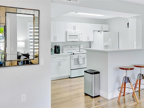This completely renovated 1/1 corner unit is the largest floor plan of its kind in the community! Featuring a modern open layout, beautifully updated kitchen, spacious bedroom, and a newly remodeled bathroom with dual vanity. Enjoy ample closet space, in-unit washer/dryer, a screened-in patio, plus a private outdoor area perfect for entertaining. Coral Club Garden Villas offers resort-style amenities including a large pool, fitness center, and clubhouse. Assigned parking is directly in front with plenty of guest spaces available. The gated community provides 24-hour security, and the association includes roof and structural coverage for added peace of mind and reduced insurance coverage. Ideally located top-rated schools, shopping, dining, and major highways.