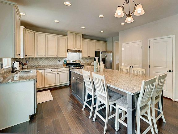 The main level features an open concept living room and kitchen designed for entertaining. The kitchen includes a large island, with seating for six, custom pantry (perfect to hide appliances or use as a coffee bar), gas cooking, and plenty of space to gather. Just off the living room is a versatile flex room that can serve as a home office, playroom, or even a fifth bedroom. Engineered hardwood floors cover the main and upper level with the basement featuring LVP. Upstairs, the primary suite offers a bathroom with a soaking tub, oversized walk-in shower, dual vanities, and a new customized walk-in closet. The fully finished lower level includes a large recreation room, full bathroom, and projector and screen that convey. This level also opens to a screened-in deck—ideal for indoor-outdoor living. Step outside to enjoy landscaped grounds, a vinyl fence, and a second expansive upper composite deck (located off the main level/kitchen).