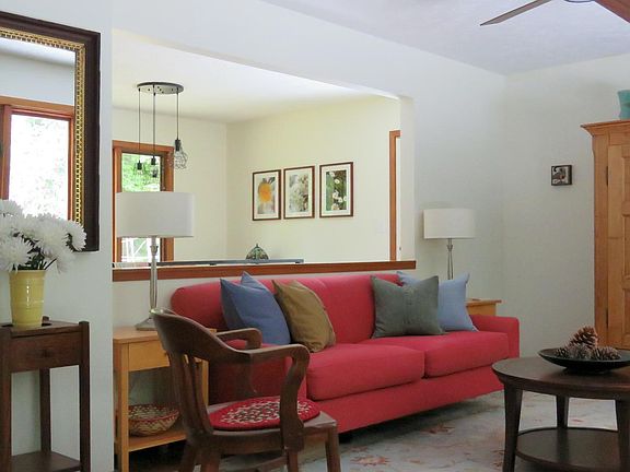 Charming 3BR/1BA home on 2.94 wooded acres just 15 minutes from Hayward. Tucked away on a private road with only six owners, this property offers exceptional peace and privacy. The lovingly maintained home features abundant natural light, a semi-open floor plan, and numerous updates: bamboo flooring, updated kitchen with newer cabinets, counters, subway tile, appliances, bath upgrades, and custom iron stair railing. A heavy-duty metal roof (2018) protects both home and oversized 4-car garage. The lower level provides flexible space with family room, laundry, workshop, storage, and a Pacific Energy woodstove alongside propane forced air. Outdoors, enjoy a spacious deck, bird-friendly landscaping, fruit trees, berries, and a 30x30 garden plot ready for next season’s harvest. Nearby Grindstone and Spring Lakes offer public access for recreation and other water sports. This move-in-ready home is a true gem and would be perfect for anyone looking for a lifestyle close to nature.