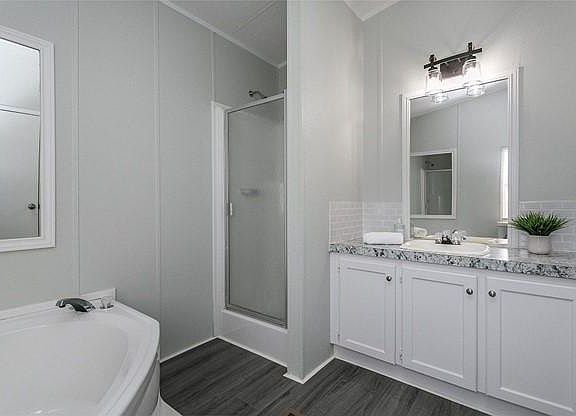 Massive backyardCorner lotMaster suiteWalk-in showerCorner garden tubClassic white kitchen cabinetsNew ceramic subway tile
