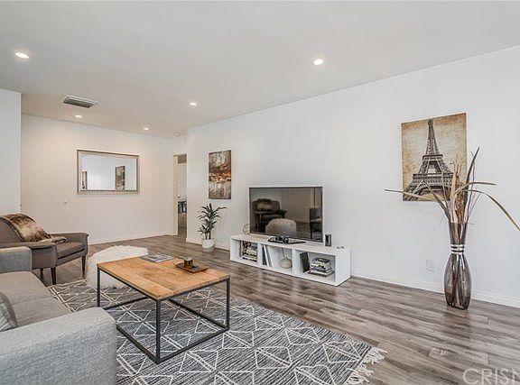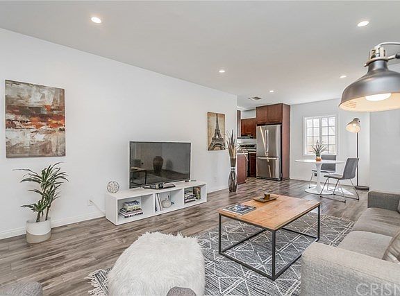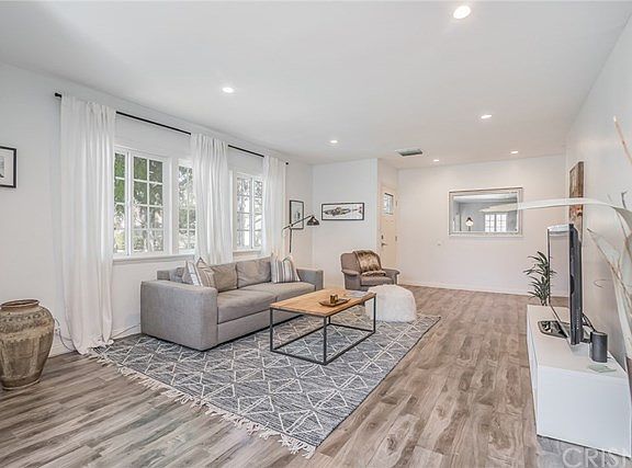 Charming updated one story 3 bedrooms, 2 bathrooms house in a beautiful pocket of Van Nuys. This entertainer's delight features over 1,200 sq ft on a lot of 5,755 sf. As you enter the house you encounter an ample open plan consisting of living room, dining room, and kitchen which features granite counters, beautiful new cabinets and stainless steel appliances. Other features of the property include newer roof, new good quality laminate flooring throughout, central air conditioning, copper plumbing (per seller), recessed lighting. From the kitchen you exit to the spacious backyard/patio deck area featuring fruit trees, with direct access to the 2 car detached garage. All appliances included. Located in a great family neighborhood close to the 405 Fwy, dining, shopping, this delightful home is calling your name!