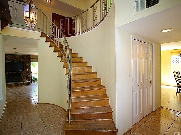 This 2,744 sq.ft., two-Story 3-Bedroom home sits on a large gated lot which features fruit trees, covered patio, and a pool and spa. You open the front door to face the grand entry with a curved wood staircase. Walk through to the large living room with a centerpiece fireplace with direct access to a covered patio and to the pool. The kitchen offers granite countertops and lots of work space, along with open access to the Dining Area, a large Family room with direct access to the backyard, and a Bonus Area which could be used as a Second Family Room or an extended Dining Room. The curved staircase leads you up to the living quarters. The large Master Bedroom features cathedral ceilings, a private balcony, two closets (including a walk-in closet), and a spacious Master Bathroom. Down the open hall are Two extra bedrooms, one of which is the size of a Master bedroom with cathedral ceilings, along with a separate laundry room and a bathroom. Recessed lights, tile and wood flooring throughout the home. Conveniently located close to the the 405-Fwy, but away from the main streets, providing a private and quiet home experience.