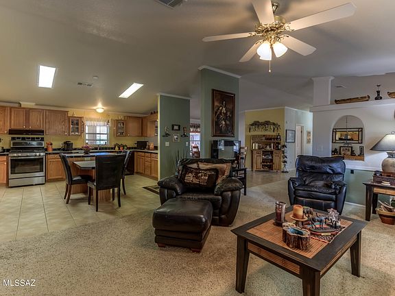 * Beautiful TURN-KEY home! Move right in and enjoy this spacious, well cared for home on a fully fenced 1 acre site. Lots of living space with Great Room, Living Room and Dining Room! Bright Kitchen with plenty of storage and eat-in breakfast bar. Big master bedroom, ensuite bathroom with separate shower and soaking tub! Split bedroom floorplan is perfect for families or guests. Fall in love with outdoor Fireplace, BBQ, fountain and big patio - an entertainer's dream! Covered porches in the front and back to enjoy AZ indoor/outdoor living. PLUS a detached 2 car garage and full separate workshop. This home has everything - with room for even more! Furniture and furnishings are included.