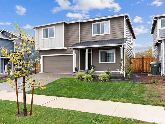 New construction completed in Feb 2023 but BETTER because the back yard is fully landscaped! This lovely home in Mtn. View Meadows offers 2,386 sf w/ 3 BRs + 2.25 baths. Main floor offers Great Room w/ eating space plus office /den. HUGE Bonus room upstairs! Beautiful slab quartz counters make your kitchen light and bright! And REFRIGERATOR is included. Large island for company to gather. SS undermount sink and Shaker style cabinets. Go out the slider to your beautifully landscaped, FULLY FENCED private back yard for BBQs, or sit under the metal gazebo and enjoy the peace, quiet and lovely Mt. Rainier view! Heat pump. Close to schools, restaurants, parks, amenities and only 15 minutes to JBLM. Truly Move-In Ready.