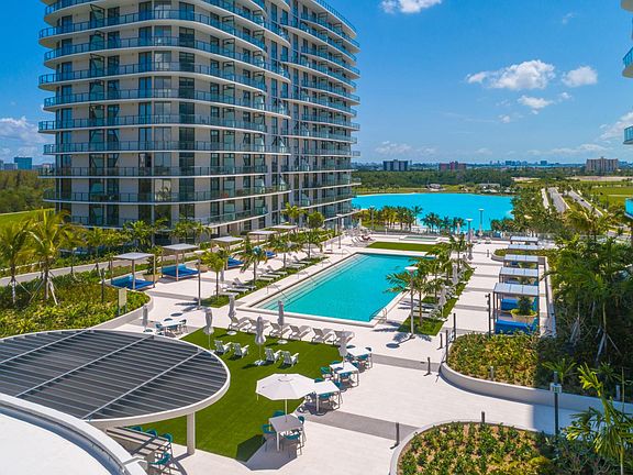 Experience a contemporary view on living, with an open floor plan, floor-to-ceiling windows, and a private balcony with panoramic views of a private lagoon, Oleta River State Park, and Biscayne Bay.