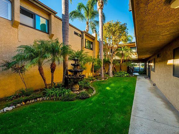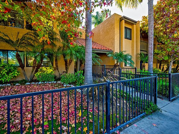 This adorable condo offers the perfect blend of style, comfort, and security just minutes from the beach. Fresh paint and updated flooring create a cohesive, modern feel from the moment you step into the spacious living area, and continues throughout the home. The kitchen and bathrooms feature contemporary updates that tie the design together beautifully. The kitchen offers all the conveniences of an oven, microwave, dishwasher and refrigerator. Both bedrooms offer generous closet space with sliding doors and large windows that fill the rooms with natural light. The primary bedroom includes a private bathroom that conveniently shares space with the in-unit washer/dryer combo. The building is gated and the unit comes with a one-car garage.