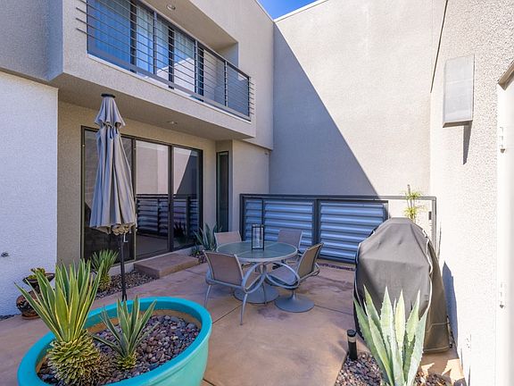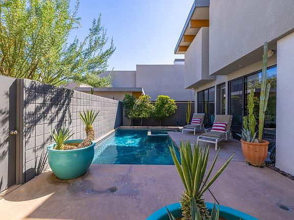 Welcome to a modern oasis in one of Palm Springs' premier gated communities! Enjoy soaring ceilings in the great room, a stylish kitchen, and a serene enclosed courtyard with a private heated pool and spa. The second floor features a Master Suite with a balcony and a Loft/Den.