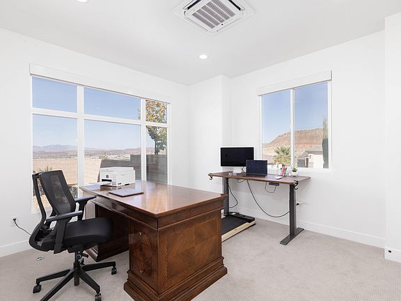 Experience the perfect blend of privacy, views, and contemporary comfort in this stunning and spacious two-story home. Each of the five bedrooms features its own bathroom, offering exceptional convenience, while motorized blinds add a touch of modern sophistication. Laundry hook-ups on both levels make daily life easier! The front bedroom/office includes a cassette mini-split system for personalized climate control. The single garage bay boasts extra depth ideal for parking, storage, or a workspace - complete with its own mini-split for added comfort. Fully landscaped, low maintenance yard. Enjoy spectacular mountain vistas right from your windows or while relaxing in the cozy outdoor spaces. Located near Shooting Star Park in an active, but quiet neighborhood. This home truly has it all!