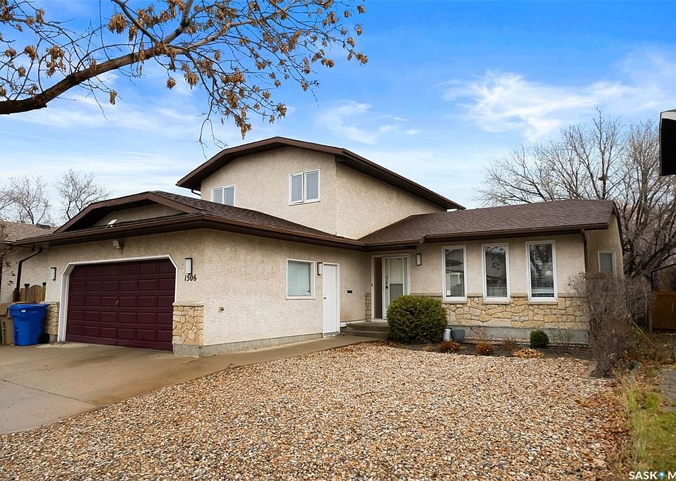 Welcome to 1506 Truesdale Drive East—an exceptionally well-kept, spacious two-storey split located in the heart of Gardiner Park. This solid home offers over 1,650 sq ft above grade, a warm and inviting layout, and excellent updates throughout. The main floor features a bright front living room with beautiful hardwood floors and three large windows that fill the space with natural light. The kitchen offers generous cabinet storage, updated stainless steel appliances and a modern tile backsplash. A cozy nook and a spacious formal dining room provide flexible options for everyday meals or hosting family gatherings. At the back of the home, the second living area includes a wood fireplace, built-in cabinetry, and direct access to the attached sunroom—perfect for enjoying extra living space year-round. Completing the main floor is a convenient bedroom, a 2-piece bathroom, and main-floor laundry. Upstairs you’ll find three bedrooms and two bathrooms, including a comfortable primary suite with a 4-piece ensuite and a walk-in closet. The basement offers a massive open space with updated vinyl plank flooring—ideal for a future rec room, gym, games area, or additional bedrooms. Outside, the property is fully xeriscaped in the front for low-maintenance living, while the backyard provides a private retreat with mature trees, a sunroom, and access to the deck. The double attached garage is insulated, and the home sits in a quiet, family-friendly neighbourhood close to parks, schools, shopping, walking paths, and all East Regina amenities. A great opportunity to own a spacious, well-built home in a highly sought-after area—don’t miss it!