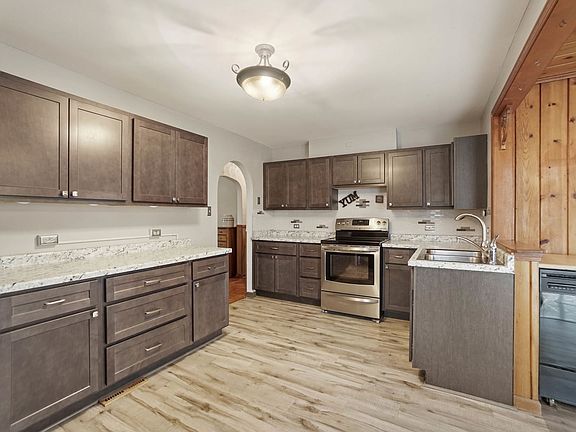 This absolutely stunning 4 bedroom, 1 1/2 bathroom, mostly brick home is nestled on a double lot and has been meticulously cared for. This is the epitome of a well maintained home! The large kitchen was recently updated in 2018 with all new vinyl flooring, modern cabinetry, countertops, and tile backsplash. The kitchen also features stainless steel appliances and an attached dining room with a glass sliding door and a huge glass block window which provides an abundance of natural light. The living room is the perfect space to enjoy your morning cup of coffee or entertain your guests and features gleaming wood laminate flooring and a huge picturesque window. The master bedroom is spacious and desirably located on the first floor with original hardwood flooring that is just waiting for your finishing touches. The second bedroom is also a great size and was freshly painted in December of last year. The first floor full bathroom is larger than you might expect with an all new pedestal sink just installed at the beginning of this year and all new shower tiling and two grab bars added back in 2018. The upstairs features two additional huge bedrooms which were also freshly painted this past December and give easy access to storage in the side attic. The full basement is finished with a dry bar, half bathroom, and separately located shower and offers plenty of additional space for storage. The sliding glass door off the dining room leads to your oversized, partially fenced backyard featuring a deck and storage shed. This list of updates on this home is truly astonishing! All new vinyl siding and roof on the addition in 2018! Front roof replaced in 2019! The rest of the roof was replaced in 2012! New water heater in 2019! Mostly all new windows in 2016! Side driveway door replaced with new steel door in 2019! The all brick detached, two car garage had its roof replaced in 2017 and the extended driveway provides additional parking options for family and friends! You won't want to miss this one, book your showing today!
