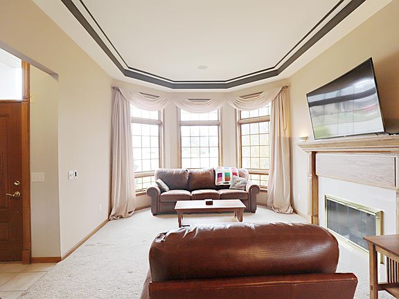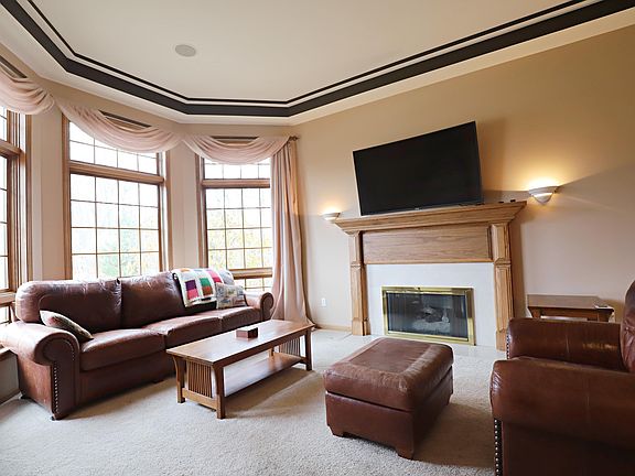 Stunning like new home on nearly an acre of wooded land, nestled in a peaceful cul-de-sac in the city, near the river, with a cart trail to the adjacent golf course. The primary suite, including a luxurious whirlpool bath and walk-in closet, overlooks this serene setting. The inviting granite-island kitchen boasts LaFata custom cabinets and includes every imaginable appliance. The main floor laundry room is only steps away with newer washer and dryer. The great room and family room offer fireplaces and Anderson windows galore, and a heated sunroom expands living space for lots of entertaining possibilities. The finished day window lower level has a comfy rec room that doubles as a theatre room, plus a spacious wine cellar and 1/2 bath. The 3-car epoxy floored garage space is immaculate. Sprinkler system, surround sound, and extra side yard complete this beautiful setting. Exclude: Family room TV.