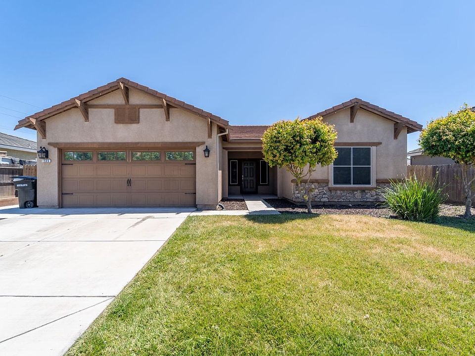 Charming Single-Story Home Near River Oaks Golf Course. Welcome to your dream home in the heart of Ceres, California! This stunning 4 bedroom, 3 bathroom single-story residence offers 2,030 square feet of comfortable living space. Built in 2014 this home has modern design and amenities for contemporary living and a spacious layout. Prime Location just 1/2 mile from the River Oaks Golf Course, ideal for golf enthusiasts. This home is conveniently located near Samuel Vaughn Elementary School, making morning drop-offs a breeze. Accessibility less than 3 miles to the freeway, providing easy access for commuters and travelers. Amenities Galore close to shopping, dining, and recreational facilities, ensuring everything you need is within reach. Discover an open-concept living area, a modern kitchen with sleek appliances, and a cozy living room perfect for relaxing evenings. The master suite boasts a luxurious en-suite bathroom and ample closet space, while the additional bedrooms offer flexibility for a home office, gym, or guest rooms. The backyard is an oasis for outdoor living, featuring raised garden beds and space ideal for barbecues, or simply soaking up the California sunshine