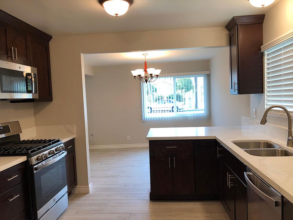 This a fully remodeled 3 bedroom, 2 bathroom downstairs, front apartment on a nice residential street in Alhambra. Absolutely everything is brand new! We took three months to completely remodel every surface and fixture with high-end installations. The remodeled items include: Custom-designed solid wood kitchen cabinets Quartz stone countertops Stainless steel stove/oven, microwave, and dishwasher Stainless steel sink with brushed nickel faucet Porcelain tile floors everywhere including the kitchen and bath Washer/dryer hookups Central air and heat Tiled fireplace with natural gas operation Double-paned insulated windows Vertical blinds Bath vanities with Quartz stone countertops Brushed nickel bath faucets and fixtures Bathtub, toilets, and luxury shower faucets Mirrored closets in bedrooms Custom wood front door and all interior doors Exterior paint for the whole building This is an apartment, but feels more like a house. When you walk into the livng room, you're greeted by a central fireplace framed by two large windows with a view of the frontyard. The living area flows nicely into a large dining area adjacent to the spacious kitchen. Large, energy-efficient windows surround you allowing views and ambient light from all four directions. Convenient washer/dryer hookups are available in the kitchen. Two parking spaces are available, one of which is a carport with a private storage area. Sorry, no pets allowed. Water, trash, and gardening included