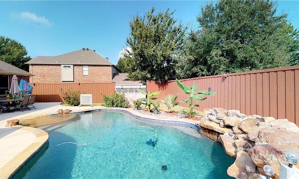 Immaculate 2-story home with beautiful brick elevation and mature trees! Inside you will find 4 bedrooms, 3.5 baths, formal dining area, an executive study & man cave, upstairs game room, and 2-car garage! New upgrades throughout include a remodeled kitchen, decorative lighting fixtures, gorgeous hardwood-like flooring, designer paint tones, and more! The gourmet island kitchen overlooking the spacious family room boasts rich wood cabinetry, modern granite counters, and cozy breakfast nook. Master retreat features spa-like bathroom with custom his & her vanities, glass enclosed shower, and walk-in closets! Large backyard with covered patio, sparkling pool, and lush landscaping is perfect for entertaining!
