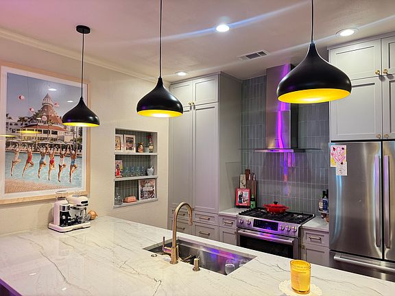 Home includes 2 fireplaces (in the living room and master bedroom) + a sonic ice machine built into the side of the island - (restaurant grade). Real hardwood floors. Spanish style home. Two outdoor patio spaces.