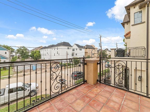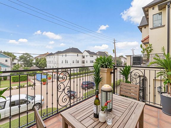 In the heart of Shady Acres sits this freestanding villa, front-facing and exclusive, with front yard and covered porch made for evenings with friends. Situated in gated Shady Acres gated enclave. Soaring ceilings, wrought iron staircase, and open concept second-floor living flow to a large north-facing terrace. The kitchen is built for both cooking and gathering with gas range, pantry, abundant counter space, stainless refrigerator included, and open sight lines to dining and living. The top-floor primary suite feels like a retreat with high ceiling, dual sinks, soaking tub, separate shower, and oversized walk-in closet, large laundry area and adjacent secondary bedroom with ensuite bath. A first-floor bedroom with full bath works well for guests, office, or gym. Attached two-car garage, window coverings and thoughtful layout add convenience. Close to the heart of Houston Heights, White Oak Bayou Trails, Cedar Creek, Crisp, Eureka Heights, Slowpokes, 19th Street shopping. W/D option!