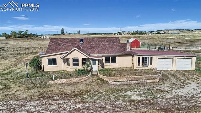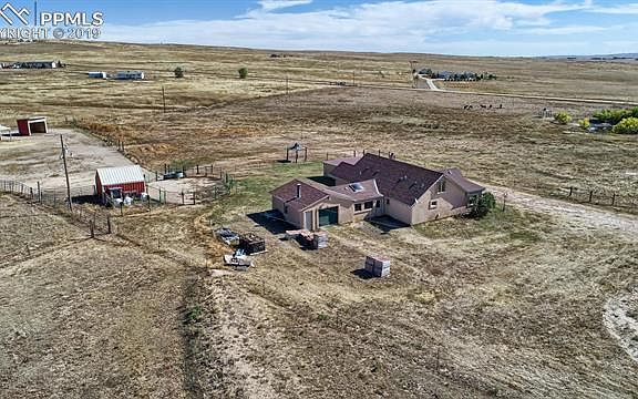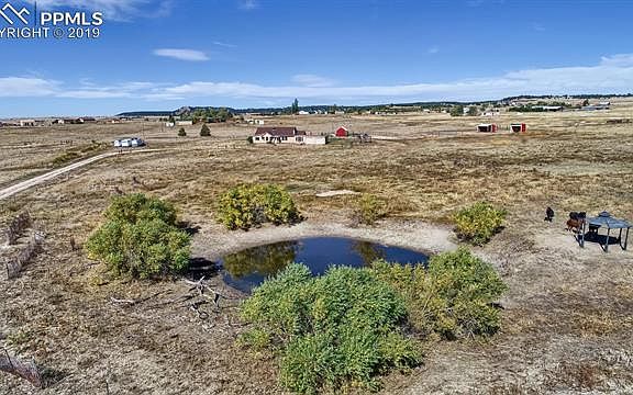 Beautiful Grand Country Living at its BEST! Large horse property located just 4 miles off of HWY 24 in Peyton CO. Just over 10 acres with its own spring-fed pond and stunning views day or night! The property has a fully fenced perimeter with lots of room including two loafing sheds and a storage shed. Main level master shares attached bathroom & a beautiful sun room/sitting room and a walk in closet with custom cabinetry. Main level features another bedroom & bathroom with jetted tub as well as a large office/study. Open living room dining concept to match the kitchen with gorgeous granite countertops. Living room has a pellet stove and 20 bags of pellets comes included! Upstairs has a 1/2 bath and two bedroom loft areas. Lots of work has been completed in this home - Roof was replaced in 2017 with ice dams. The entire house had stucco added to siding and a whole house fan inserted. House has a Lifetime marathon water system, and a whole house water filter system. There has been a new pump placed for the well system. Main electric panel and sub panel were replaced in 2012. Jetted tub in main level bath. All outbuildings are wood structured and metal clad. This is a beautiful opportunity - don't miss out!