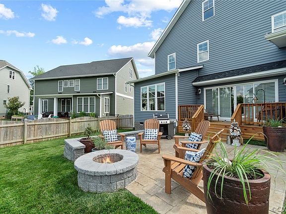 EXPERIENCE & ENJOY ROUNTREY to the fullest in this picturesque home in a waterfront community boasting true resort-style amenities & unique architecture. Be wowed by the character & features of the Birkshire by Homesmith Construction. Step into an open foyer w/hardwood floors & crafted trim, the perfect preview of your custom home. The stately dining room leads you through a butler's pantry to a gorgeous kitchen featuring double wall oven & island, overlooking a sunny breakfast nook. Find a warm fireplace, accompanied by coffered ceiling, in the Family Room, an ideal setting for gatherings or simply relaxing at home. Sliding glass doors open up the back wall of this room to a deck w/stunning views, bringing the outside in & doubling your entertaining space. A 1st floor bedroom makes a perfect guest room, while the study to the back is a quiet space to work. Retreat upstairs to find a luxurious master suite, plus 3 add'l large bedrooms, each w/attached baths. Easily accessible storage is up the steps w/option to finish for extra living space. Other highlights include custom plantation shutters throughout, stamped concrete patio w/fireplace & professionally landscaped yard w/fence.