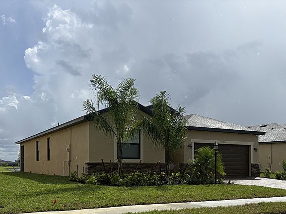 ** Move-in Ready ** A beautiful Brand New unfurnished 4 Bedroom, 3 Full Bath single-family Home with Attached 2 Car Garage at the Portico Gated Community in Fort Myers, FL. Enjoy a morning cup of coffee in the large screened Lanai overlooking a beautiful lake. This home boasts an open floor plan with 2032 Sq Ft of living space and is located in the Resort-Style Gated Community of Portico in Fort Myers. This light and bright home offers a modern layout with White Shaker Style Cabinets, Granite Counter Tops, Wood Blinds, Ceiling Fans all around, All Tile No Carpet, Stainless Steel Appliances, Washer and Dryer, A MASTER SUITE WITH LARGE WALK IN CLOSETS and large double-sink bathroom. A Large Screened Lanai overlooking a lake. Great Location, Close to Shopping (8 minutes drive to Publix) and Schools. Small Pets allowed with approval. Reach out today to schedule your tour.
