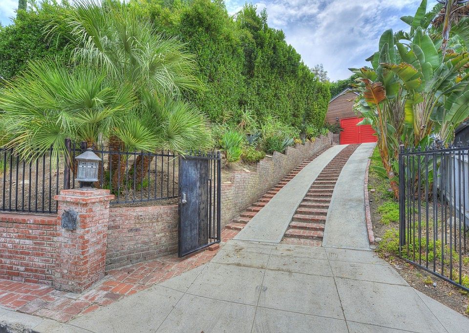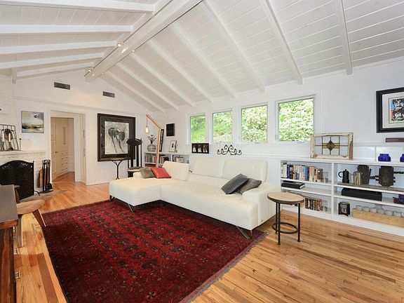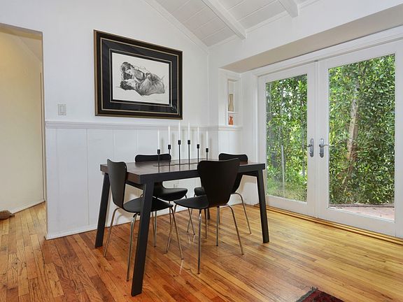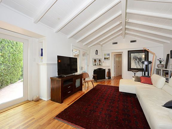 This charming and stylish home is secluded and sits above street level south of the Boulevard. The living room has vaulted wood beam ceilings, hardwood floors, fireplace and two sets of French doors that lead to a beautiful private patio, perfect for entertaining. Built in shelves, custom moldings, unique cutouts and picture windows add an architectural flair to this already chic and sophisticated room. This home has been remodeled and updated over the past 10 years. The kitchen also has a vaulted wood beam ceiling and is a cool mix of wood, stainless and glass. The converted garage is currently being used as a studio/ office with a huge closet for storage and a skylight provides natural light. Both bedrooms have built in closets and drawers. The master has an en suite bath and French doors to a private patio. Bathrooms have both been updated with sleek and modern fixtures including a spa tub. Rear yard is terraced with a patio off kitchen, and a spa tub at the top with a city view. The multiple out door spaces offer many relaxed and creative lifestyle options. There is a new sewer line to the street, dual pane windows and doors, copper plumbing and newer a/c and heat. Easy access to both the 101 and 405 Freeways this home is a winner!!
