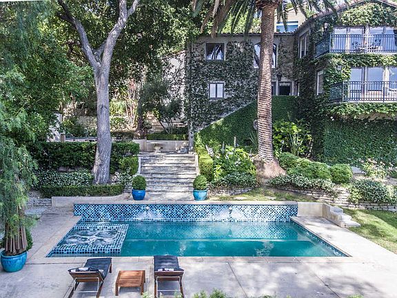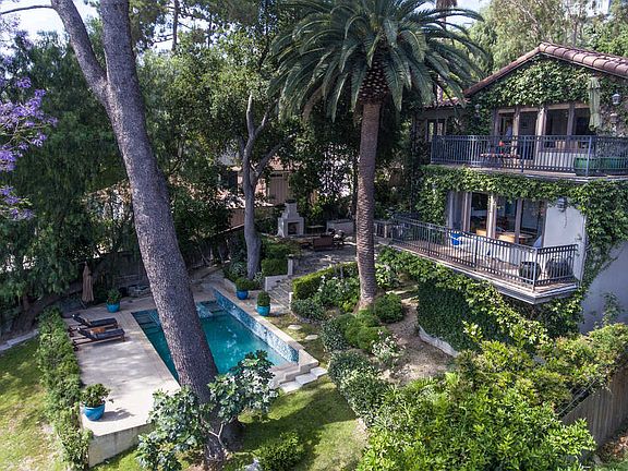 Serenity in Sherman Oaks oasis -- Encompassing nearly a century's worth of Southern California legacy, this exquisitely restored open concept 1929 Spanish abode offers 360 degrees of privacy while displaying some of the most stunning city and mountain views in the zip. An abundance of natural light peaks through the organic landscaping and lush vines beautifully covering the outside - all designed by celebrity designer, Scott Shrader. The freshly painted walls and custom white oak hardwood floors showcase that tranquility is never lost in this home. The custom lighting artistically placed by celebrity interior designer, Melinda Ritz, highlights each room for optimal peace of mind. High, wood-beamed ceilings and stunning Spanish archways create an ethereal ambiance throughout the home. The entire home has been converted into a smart home and can be controlled from your phone in or out of the house. Enjoy your favorite music via the built-in speakers placed throughout the home and in the backyard. An extensive downstairs primary suite boasts a walk-in closet and a private terrace, while two additional bedrooms enjoy French doors opening outside to your Entertainer's Oasis which features a retreat fireplace under a large canopy oak tree, built-in outdoor kitchen: including a BBQ, fridge, sink, pantry storage. Take a soak in the heated saltwater pool and spa, and enjoy a newly installed outdoor pebble stone shower and outdoor bathroom. Marble countertops, solid brass hardware, and stainless-steel appliances comprise the spacious kitchen and breakfast nook. State-of-the-art home security cameras and fresh look bathrooms round out the renovations for 15061 Encanto. Embodying charm, luxury, leisure, and flawless indoor/outdoor living just south of Valley Vista, this Sherman Oaks Spanish is the best opportunity available in the city.