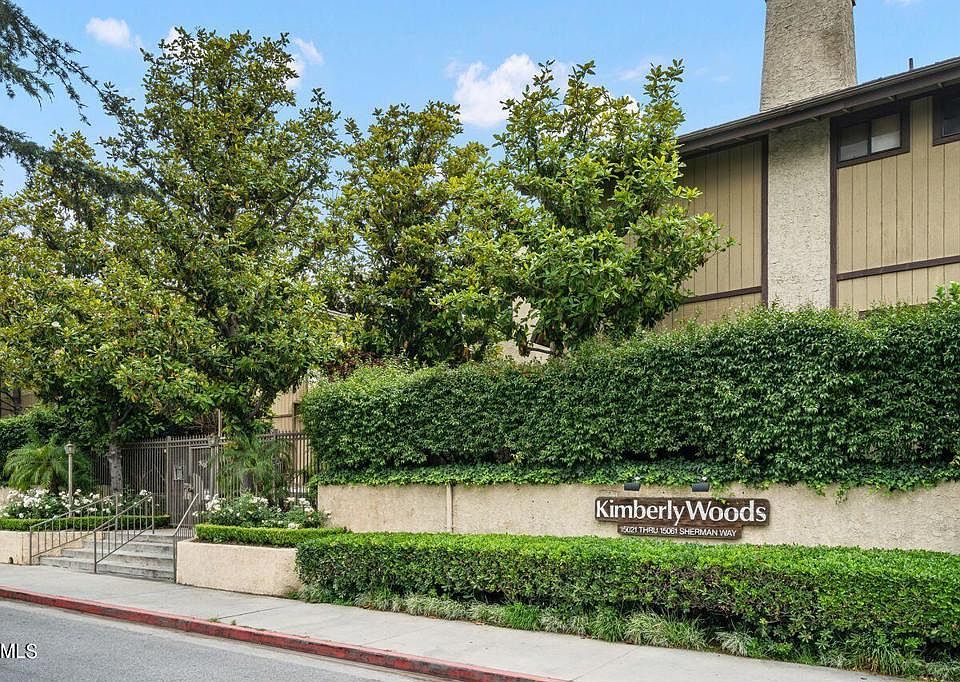 Welcome to the lovely 'hidden gem' Kimberly Woods community in Van Nuys. This desirable townhouse is tucked away in the back of the community with plenty of trees and a park-like area. As you enter this spacious home, you will immediately notice the fresh new paint throughout and the original parquet wood floors. The large living room has good natural light, a gas burning fireplace and sliding glass doors that lead you to your private patio with room for a large patio table & chairs, a BBQ and room for plenty of potted plants. This is open to the park area. Just off the living room is the formal dining area with a wet bar with storage that leads to the open kitchen with plenty of cabinets, south facing windows and an area for a large breakfast nook or small family room. There is a half bath off the dining room that leads to the stairway to the garage. All three bedrooms are located on the top floor and include a quite spacious primary suite with multiple closets and attached private bathroom with ample storage. There are multiple storage cabinets in the hallway that leads to the remaining two good size bedrooms plus a full bathroom as well. On the bottom floor, you will find an oversize garage that has plenty of space for storage and the washer/dryer hook-ups. The community offers a private pool, spa and gate controlled access to enter. All this property needs are a few updates to make this something special. There is definitely lots of upside potential here. Don't miss out on this wonderful opportunity!